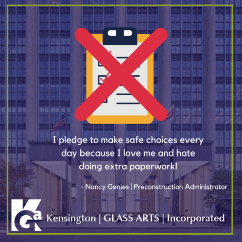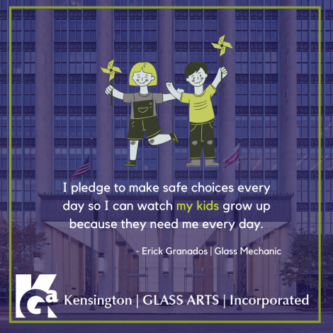 During the week of May 7th through May 11th Kensington Glass Arts, Inc. is taking part in Construction Safety Week. Construction Safety Week is a time to reflect upon any hazards that may occur while doing our jobs and the steps we are trained to take which help eliminate those hazards. The theme of this year’s Safety Week is The Power of Safe Choices. Every day we make choices on job sites, in the fabrication plant and even on the road. These choices can be something as simple as using the turn signal while driving to a job site or choosing to wear the appropriate PPE needed for a task. But, do we ever take a step back to think about the implications of our choices?